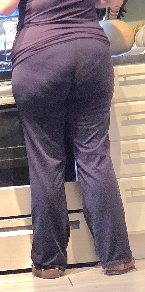 My milf inlaw and her fat ass. I wish i could fuck this so badly. I just found out she reuses her panties. These pink ones had no stain or smell yesterday, but today they have the best smell, I came so fast just from it.